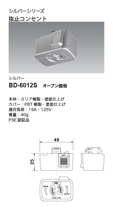 TOP > PRODUCTS > BD-6012S 抜止コンセント/シルバー
