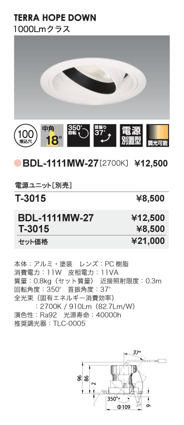 TOP > PRODUCTS > BDL-1111MW-27 1000Lmタイプ