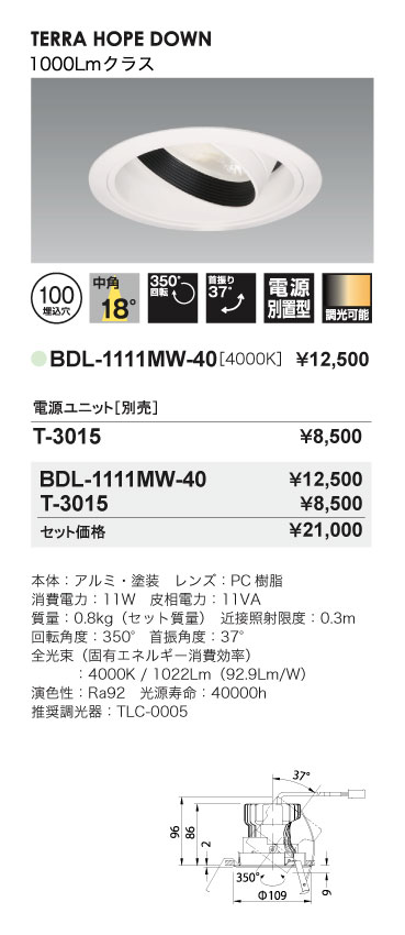 TOP > PRODUCTS > BDL-1111MW-40 1000Lmタイプ