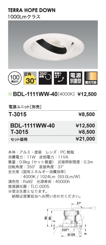 TOP > PRODUCTS > BDL-1111WW-40 1000Lmタイプ