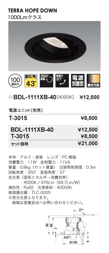 TOP > PRODUCTS > BDL-1111XB-40 1000Lmタイプ