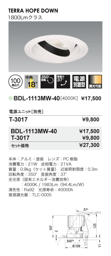 TOP > PRODUCTS > BDL-1113MW-40 1800Lmタイプ