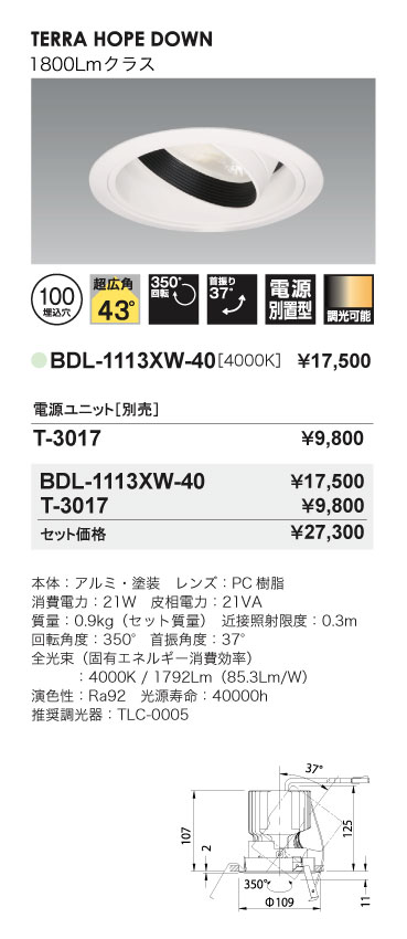 TOP > PRODUCTS > BDL-1113XW-40 1800Lmタイプ