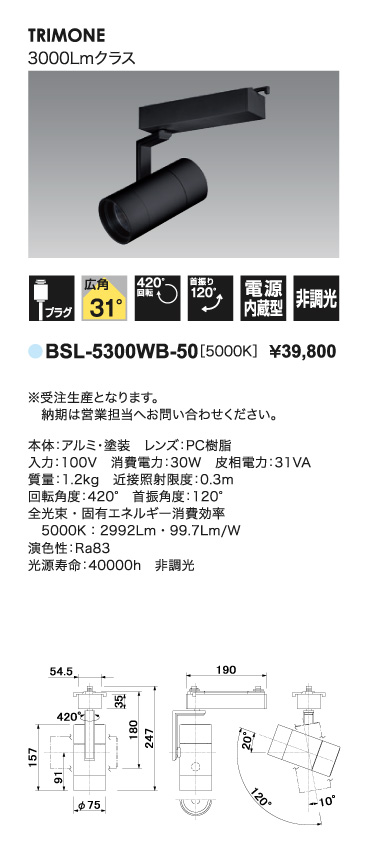 TOP > PRODUCTS > BSL-5300WB-50 3000Lmクラス/非調光