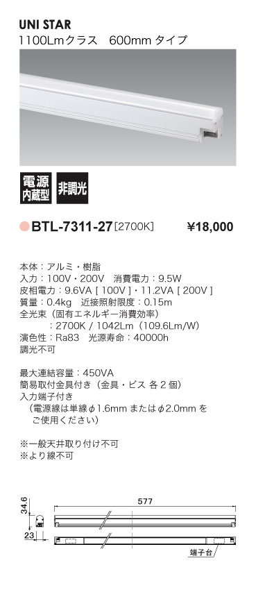TOP > PRODUCTS > BTL-7311-27 600mmタイプ/1100Lmクラス/非調光
