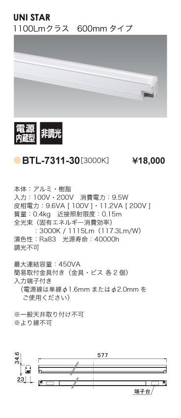 TOP > PRODUCTS > BTL-7311-30 600mmタイプ/1100Lmクラス/非調光